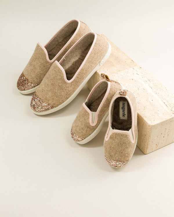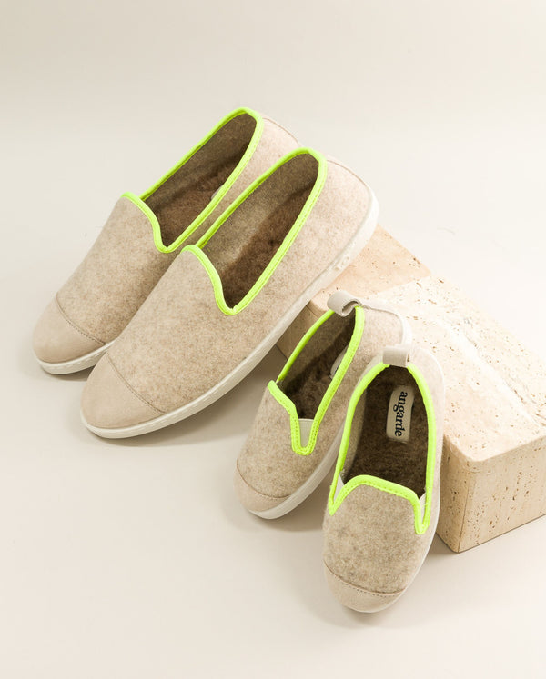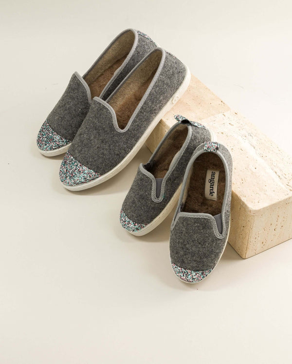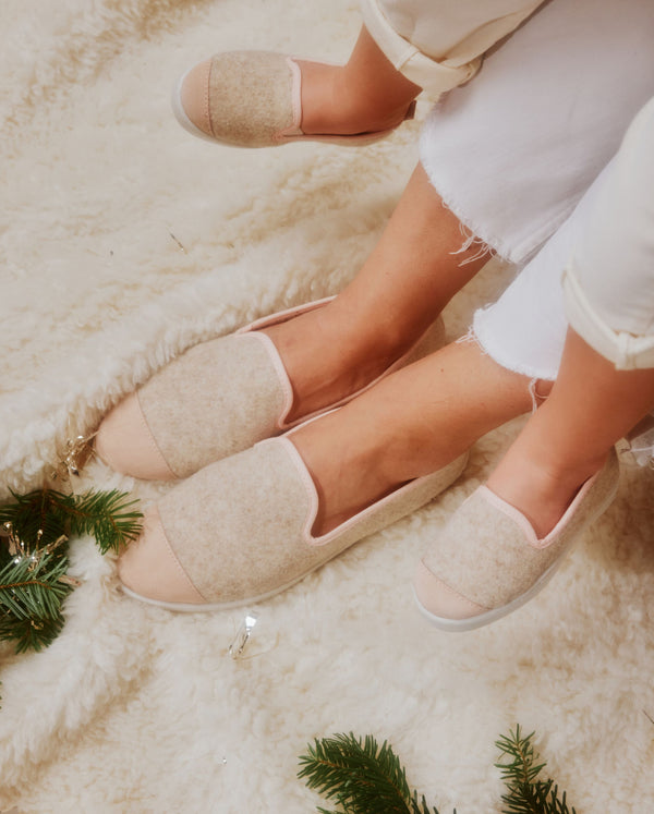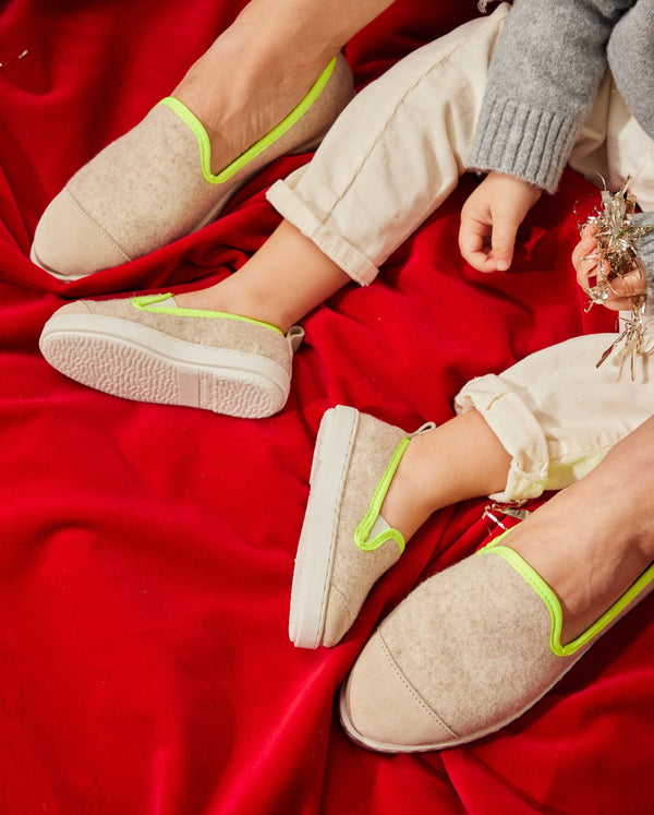 Pour faire la paire avec mini, découvrez nos duos iconiques de chaussons en laine recyclée femme & enfant !