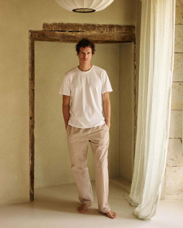 Quand nous avons dessiné notre pantalon de pyjama, nous avions bien en tête qu’il devait avant tout être un pantalon d’intérieur. Beaucoup d’hommes préfèrent dormir nu ou en caleçon, mais il peut être judicieux d’avoir un pantalon à porter quand on a de la compagnie ou en vacances. Ce bas de pyjama pour homme est donc structuré grâce à ses poches et à sa fausse braguette pour répondre à ce genre de situations. Il a également un élastique souple à la taille pour ne pas serrer le ventre la nuit. Si vous n’êtes pas fan de l’option pantalon, notre short de pyjama homme peut aisément prendre sa place sur votre wishlist !