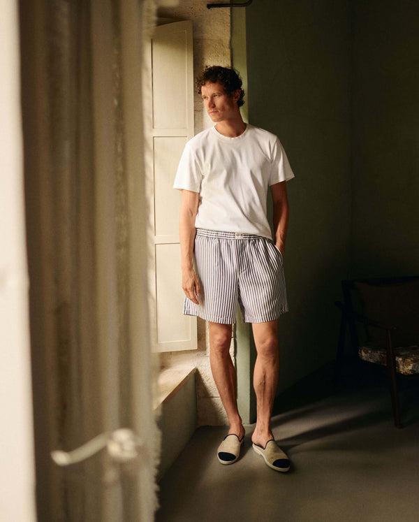 Nous avons cherché à transcender la conception traditionnelle du pyjama short homme, le considérant non plus seulement comme un simple vêtement de nuit, mais aussi comme un short d'intérieur, aussi confortable et qu'élégant. Sachant que tout le monde n'apprécie pas de dormir en pantalon long, nous avons jugé nécessaire de créer une alternative qui allie confort, douceur et élégance. À l'image de nos chaussons homme élégants et ultra confort, conçus aussi bien pour chiller chez soi que pour recevoir des amis le soir, il était important pour nous que ce pyjama short homme puisse se porter aussi bien pour dormir que pour petit-déjeuner entre amis.