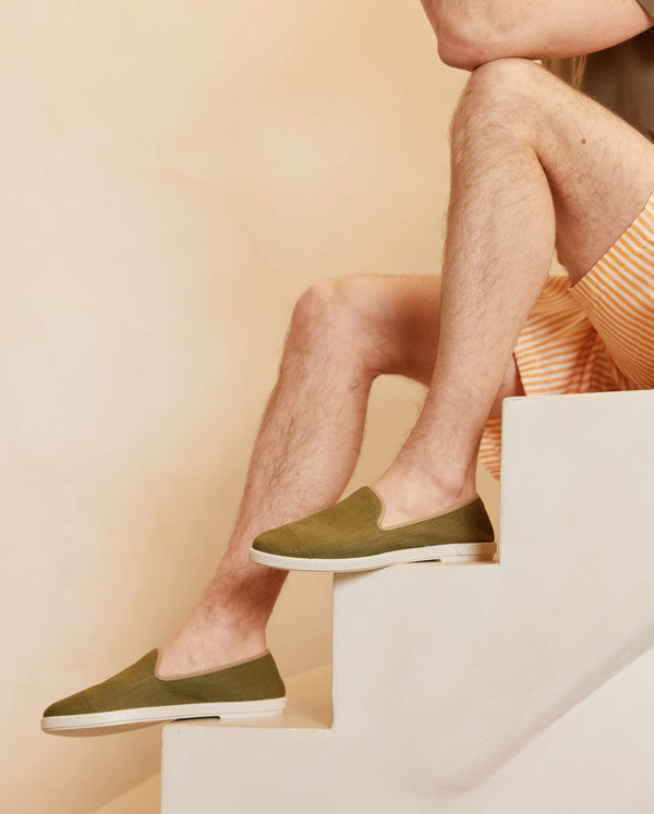 Our men's summer slippers stand out for their ingenious design based on light and breathable materials such as linen or cotton. Their main asset lies in their removable and ultra-breathable bamboo terry insoles. This material, naturally soft and absorbent, regulates humidity and keeps feet cool, even when the temperature rises. Thanks to their lightness, these slippers provide incomparable comfort all day long, without weighing down your feet.