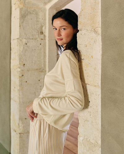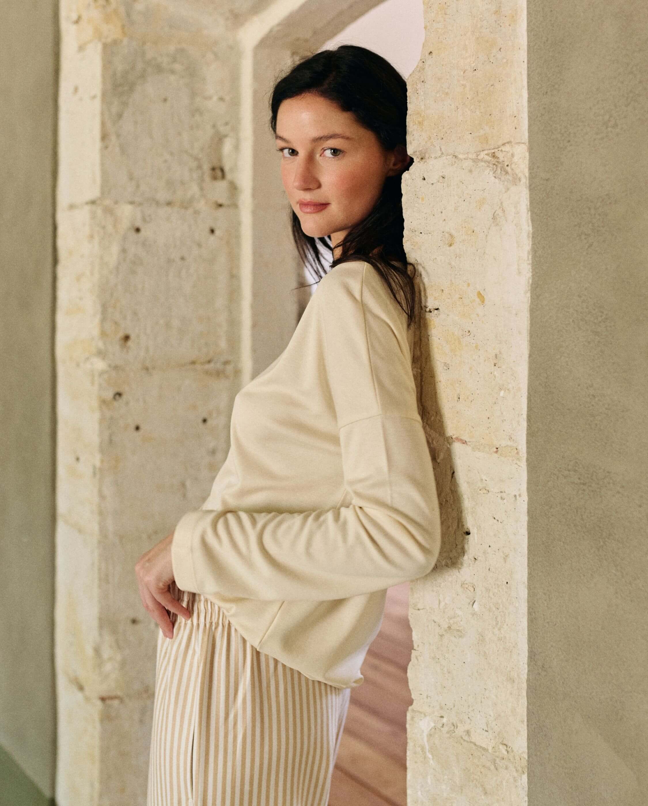 Our knitwear comes from Matias & Araujo in Portugal. This blend of 70% tencel and 30% organic cotton is a soft blend of two high-quality yarns for your greatest comfort. The Tencel fibers, here certified Lenzing, come from wood cellulose, dissolved in a non-toxic solvent. This solvent being recovered at 99.77%, the tencel is produced in a quasi-closed loop circuit. The cotton used in this knitwear is certified organic (OCS). It is therefore less water-consuming than conventional cotton and does not cause health problems for workers.