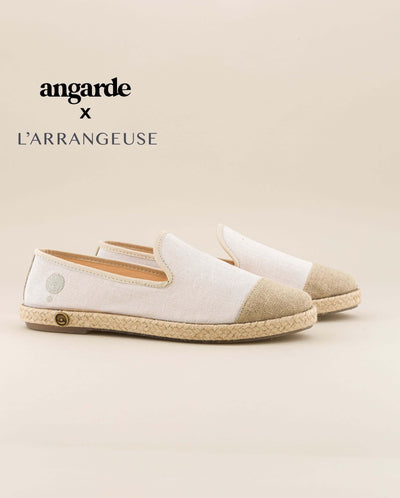 Marie Quéru, l'ARRANGEUSE, is once again collaborating with Angarde on a summer creation: linen espadrilles.