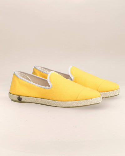 Discover our machine-washable, durable and ultra-comfortable yellow espadrille for men, made from recycled cotton in our workshop in Spain.
