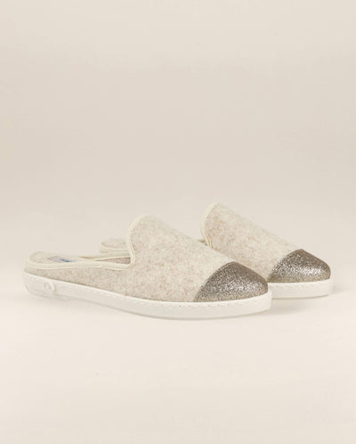 Women's wool mule, beige glitter