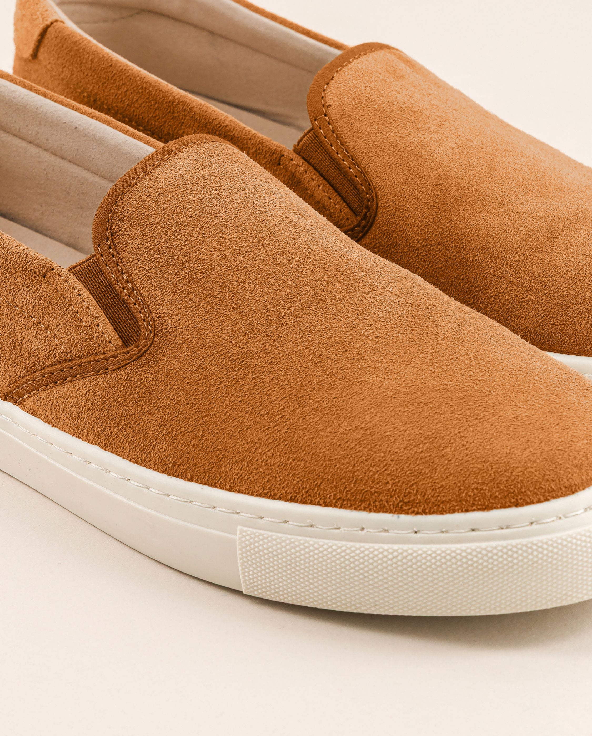 The Slip-on is the ultimate loungewear sneaker. Angarde reimagines it in its Spanish workshop, preserving its surf-culture–inspired style while using Italian camel suede leather to give it a sporty look. Clean, timeless, and ultra-comfortable.