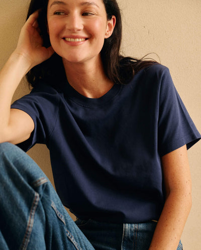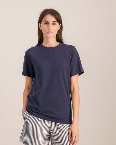 Women’s navy blue T-shirt in interlock organic cotton knit (215 g/m²)