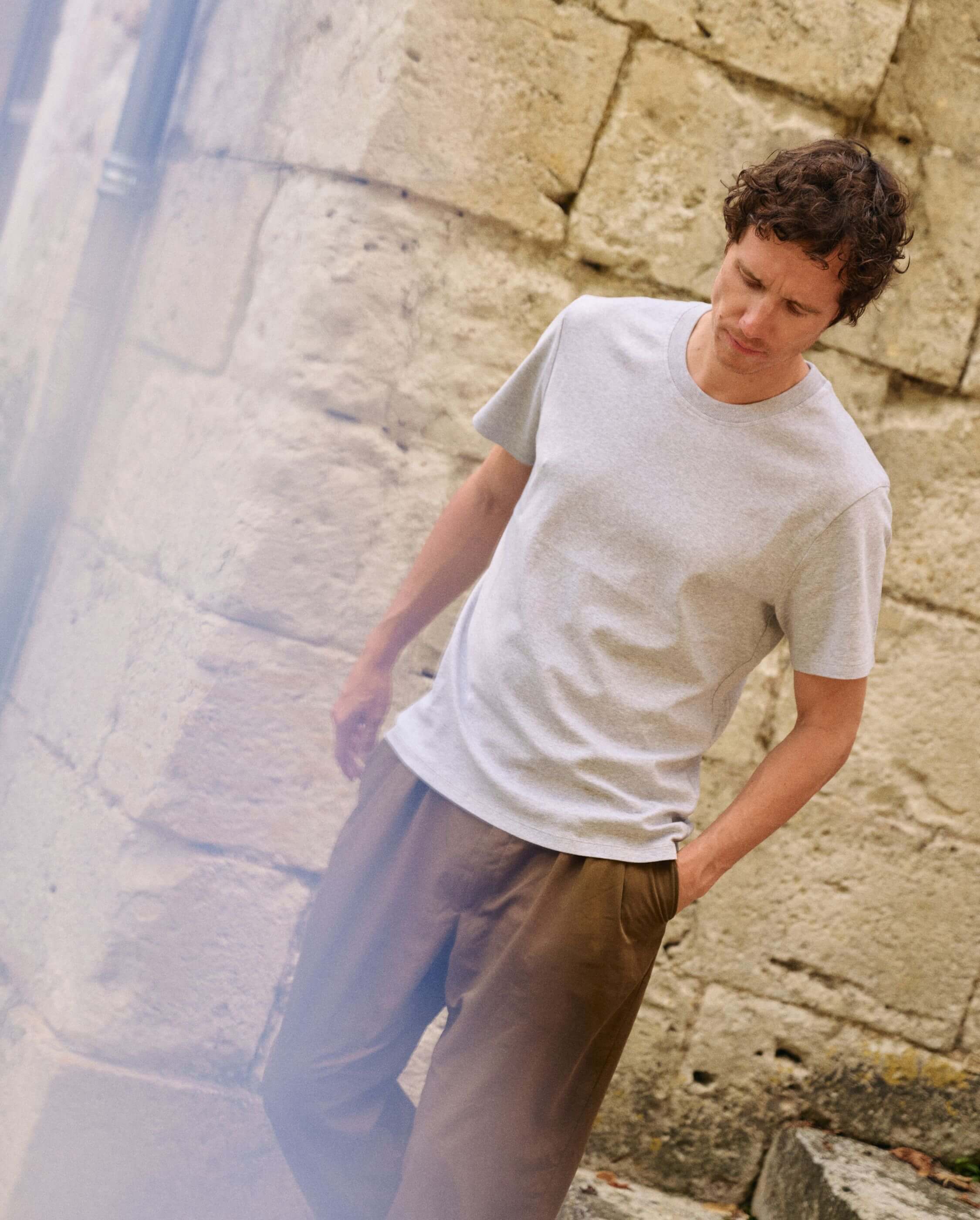 Men’s grey T-shirt in interlock organic cotton knit (215 g/m²)