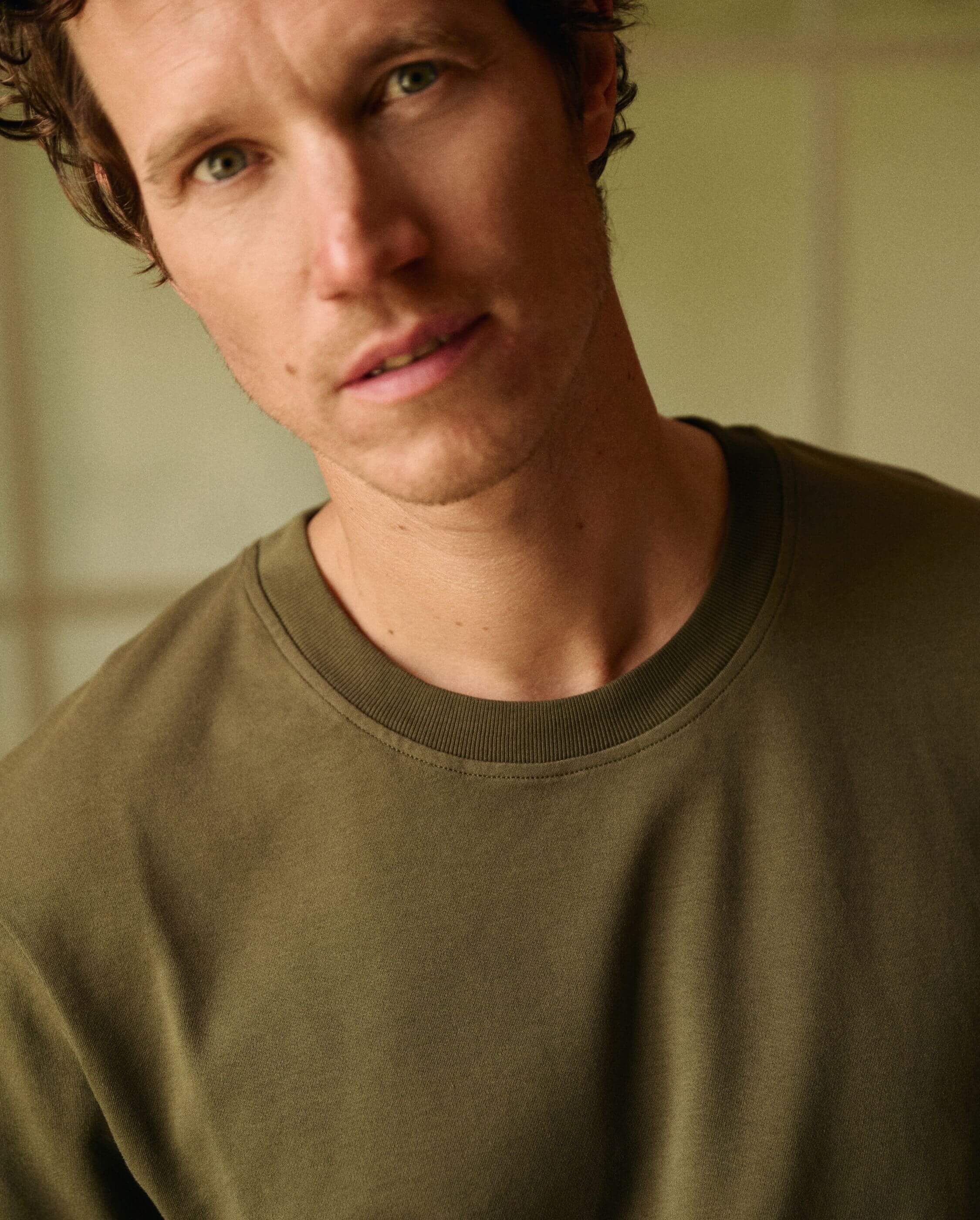 Men’s Khaki T-shirt in interlock organic cotton knit (215 g/m²)