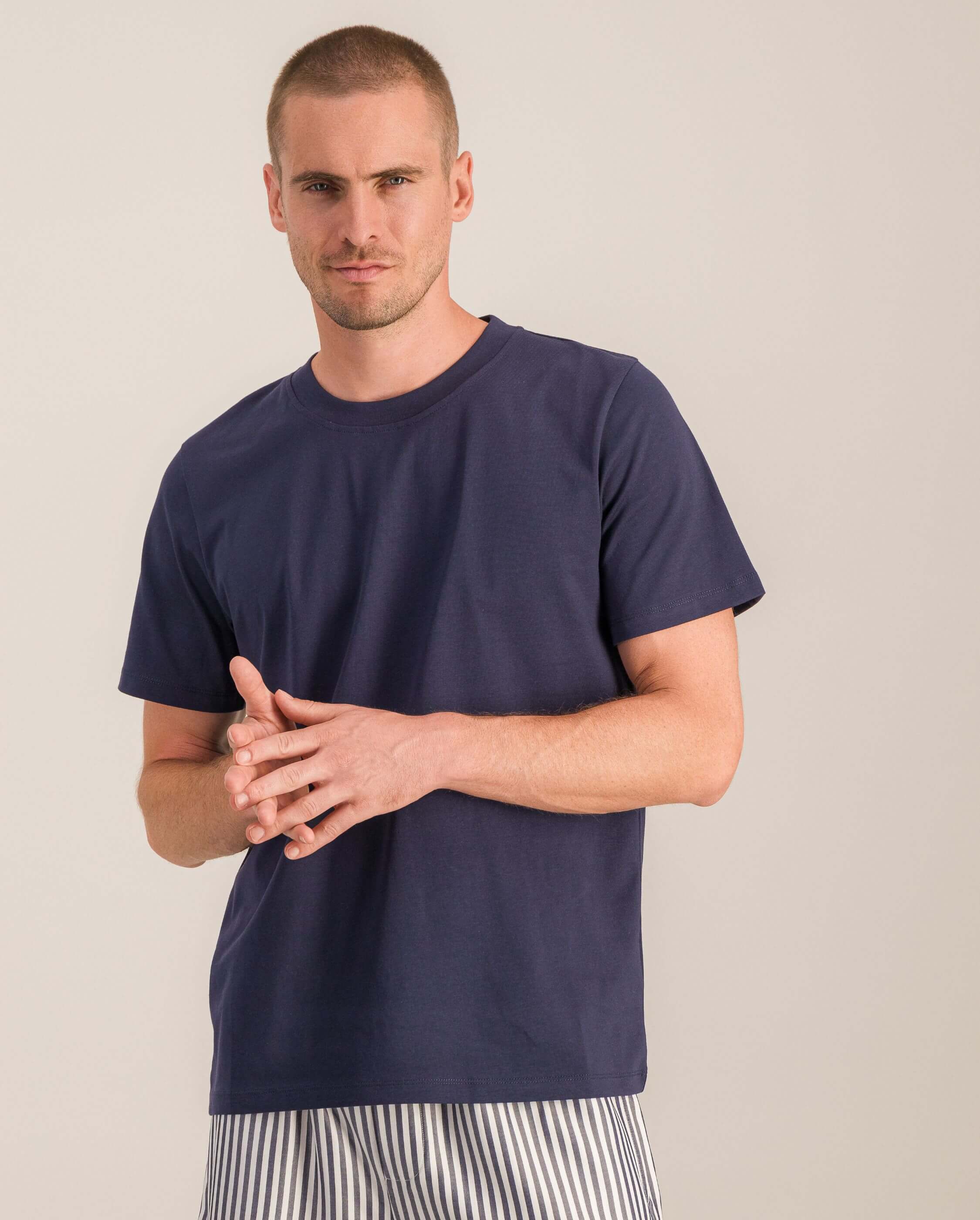 Men’s navy blue T-shirt in interlock organic cotton knit (215 g/m²)