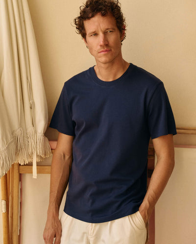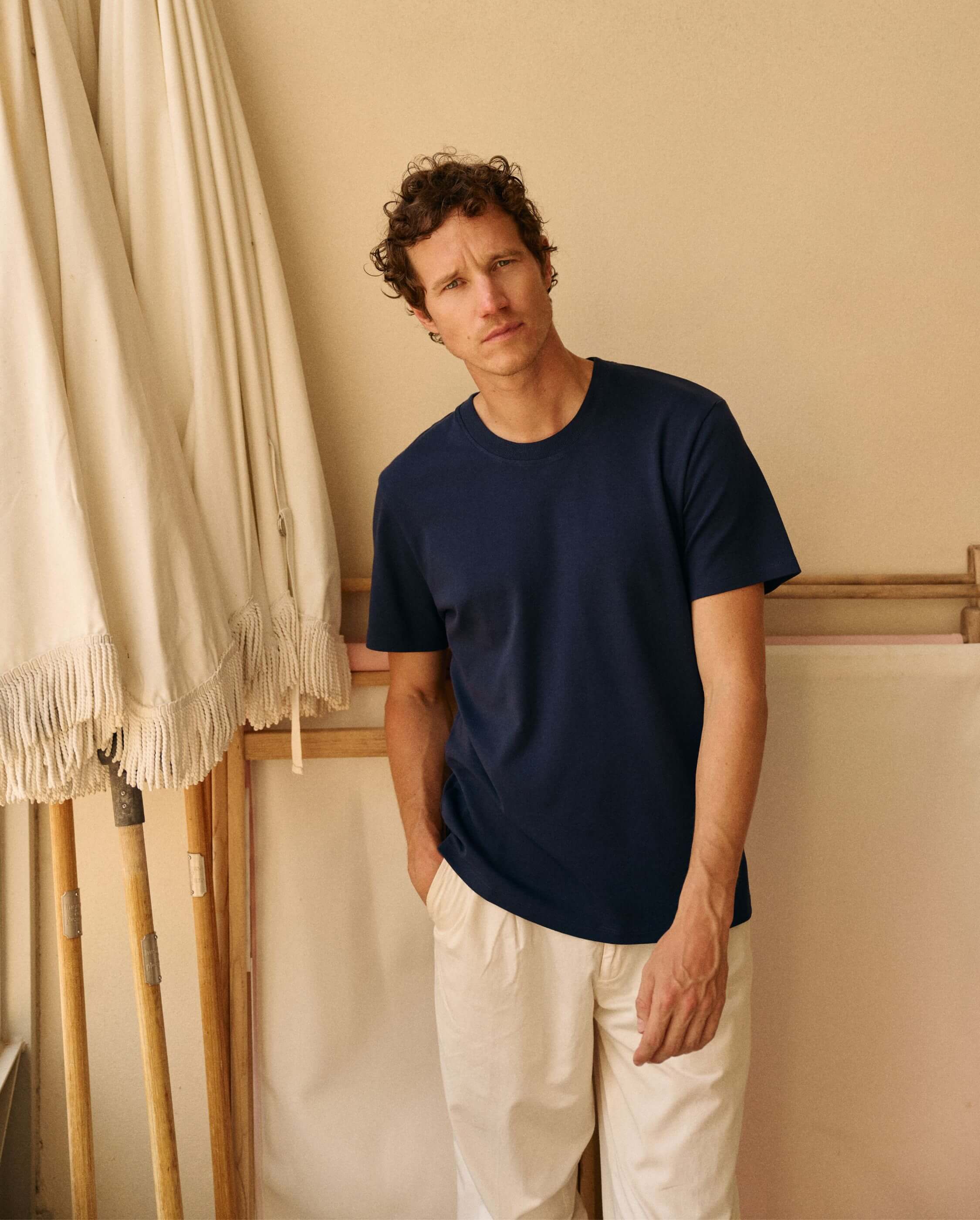 An essential piece of the men’s wardrobe. Made from organic cotton with the perfect drape. A breathable, ultra-soft, and wrinkle-free knit. The navy Bondi T-shirt combines comfort with natural elegance, featuring a deep, refined hue that complements any outfit. Its straight cut and soft feel make it a lasting essential, to wear on its own or layered under an overshirt, from morning to night.