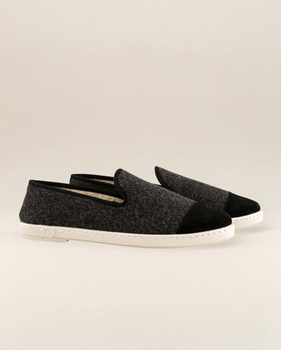 Chausson femme en laine recyclée gris foncé à l'empiècement noir