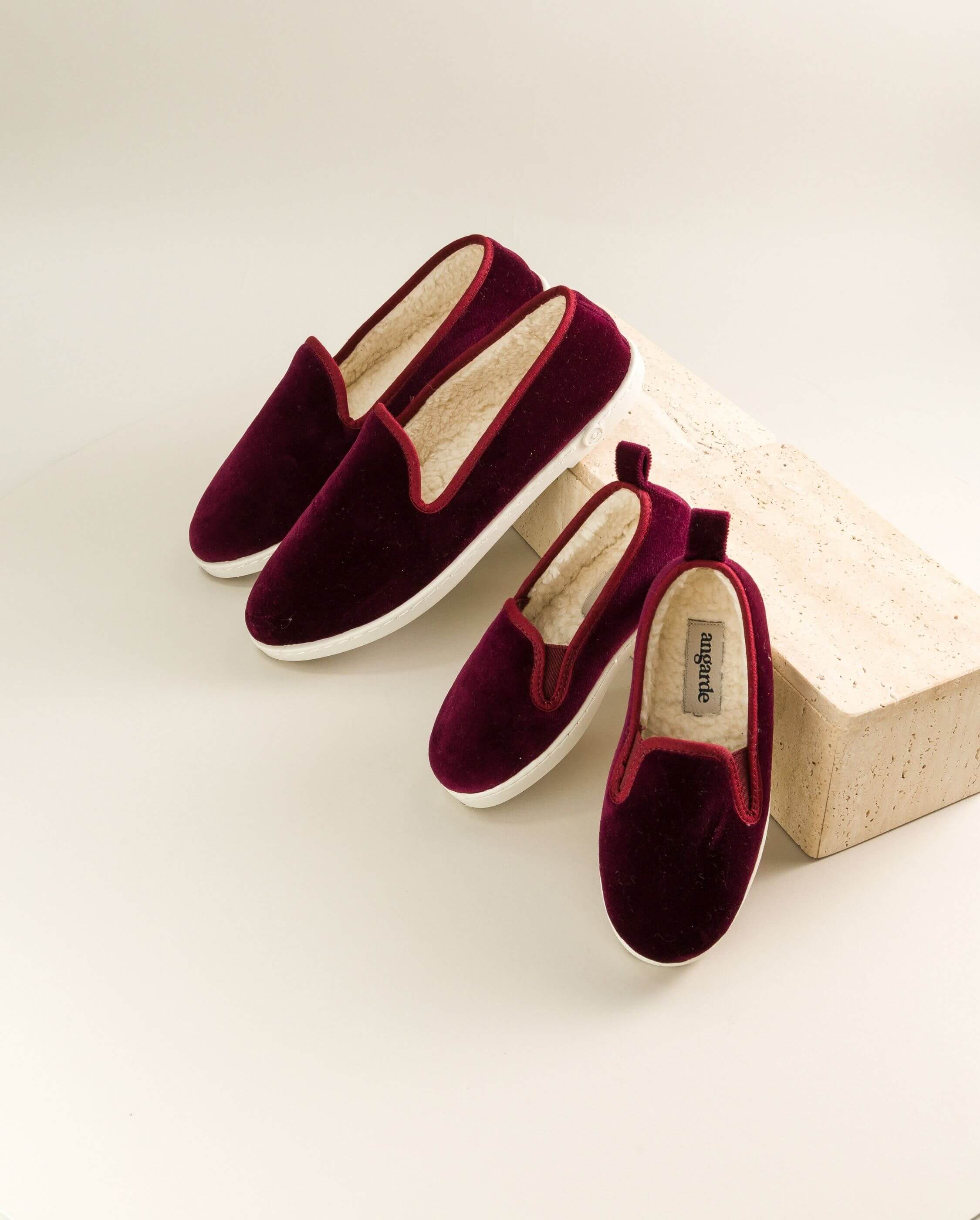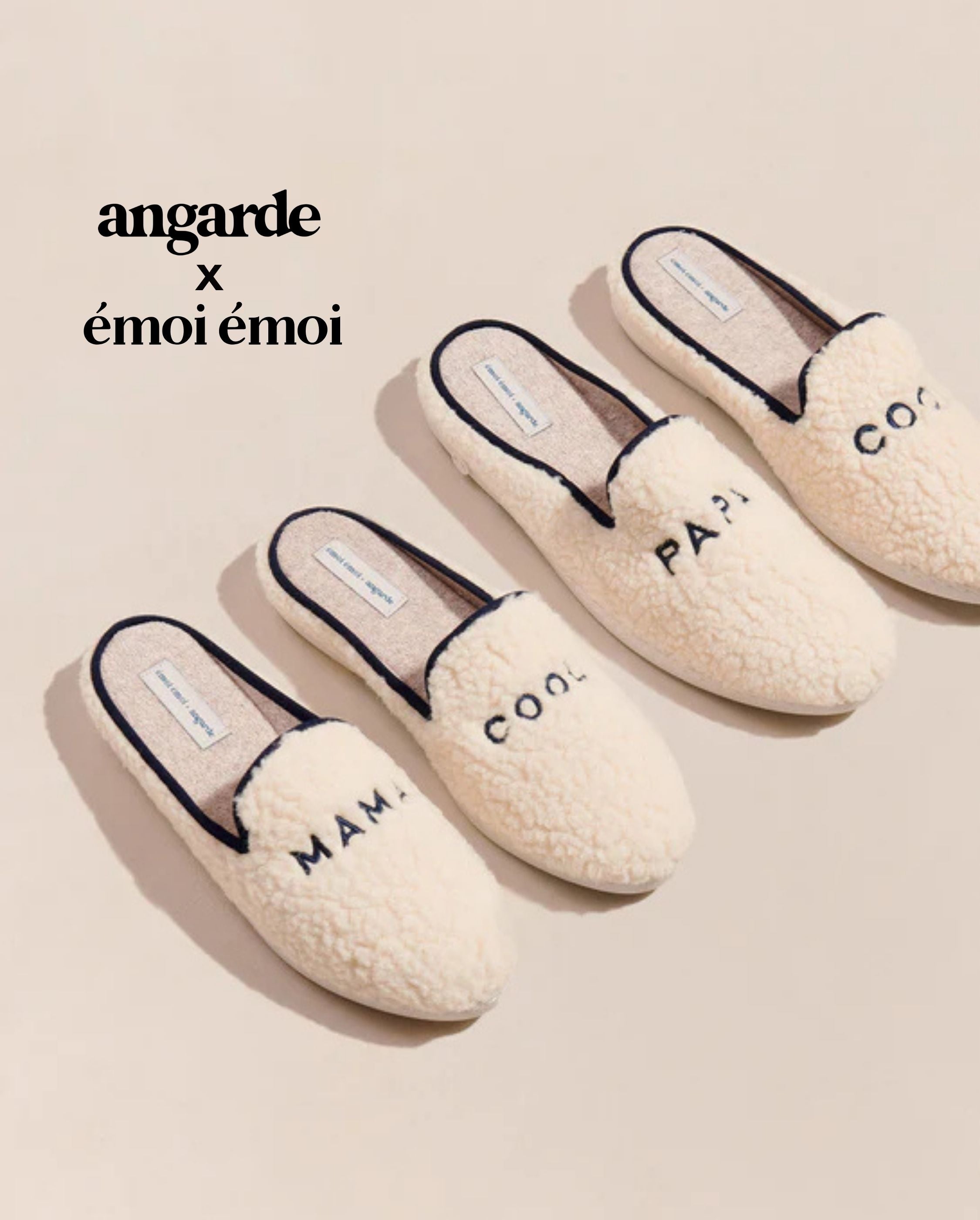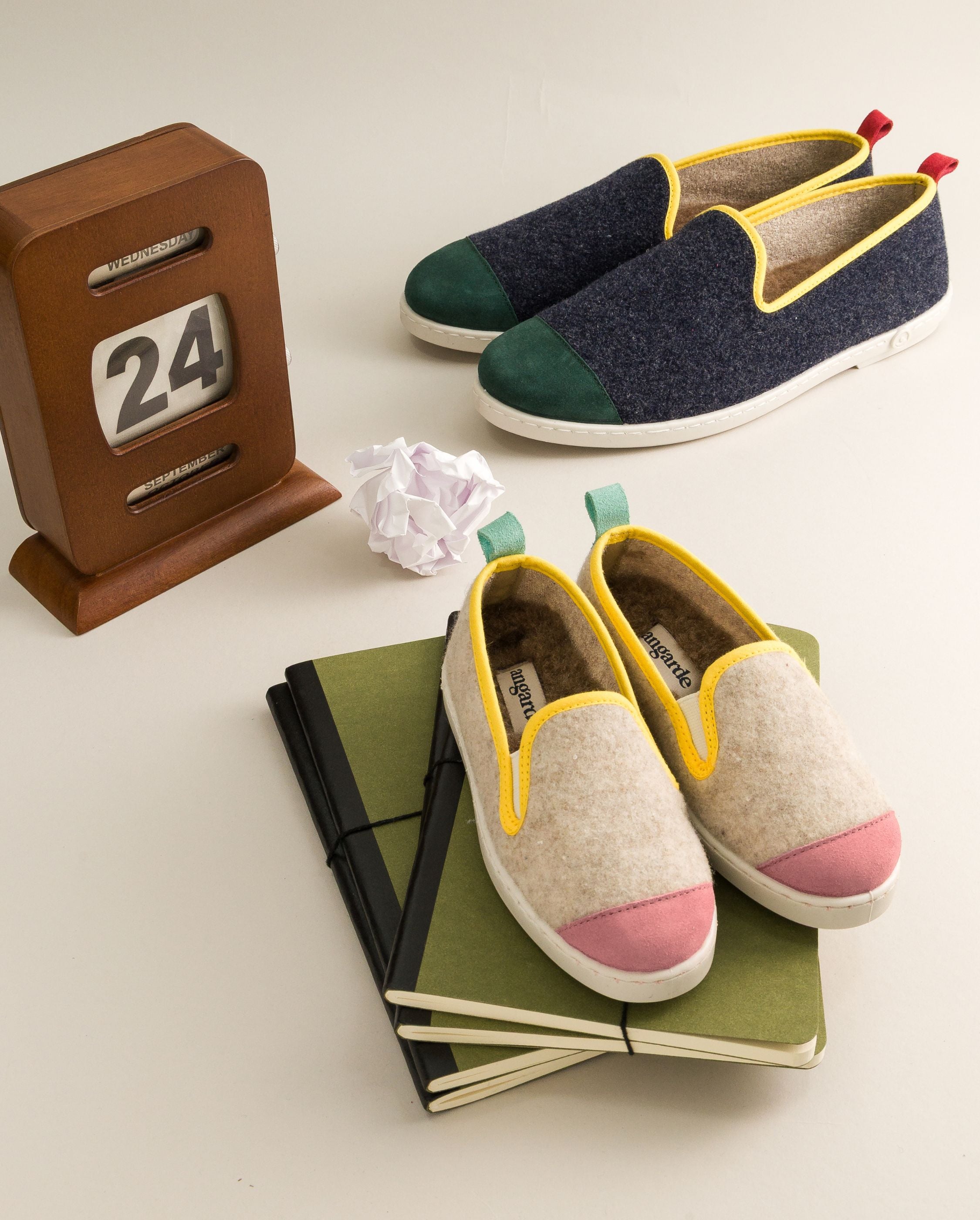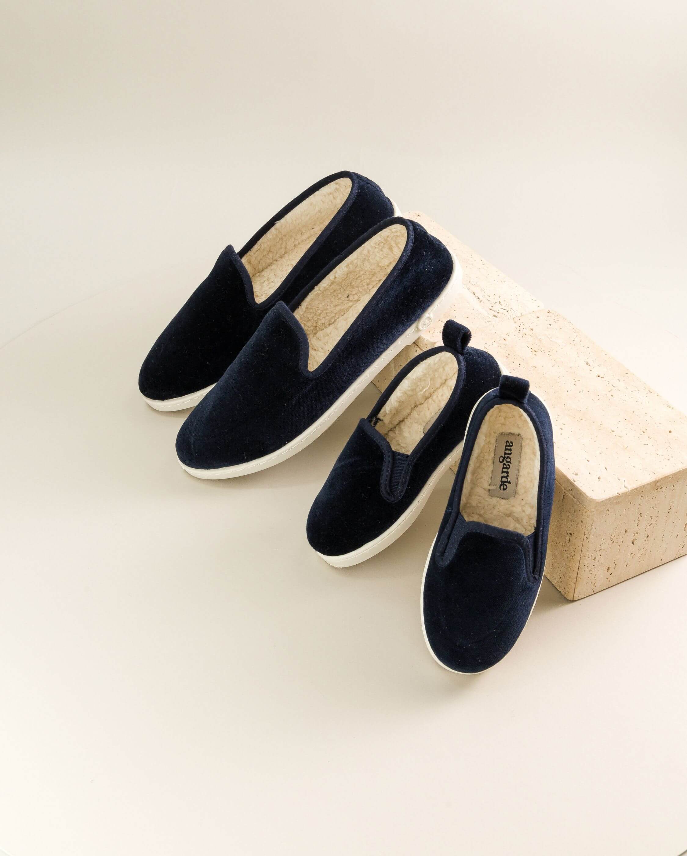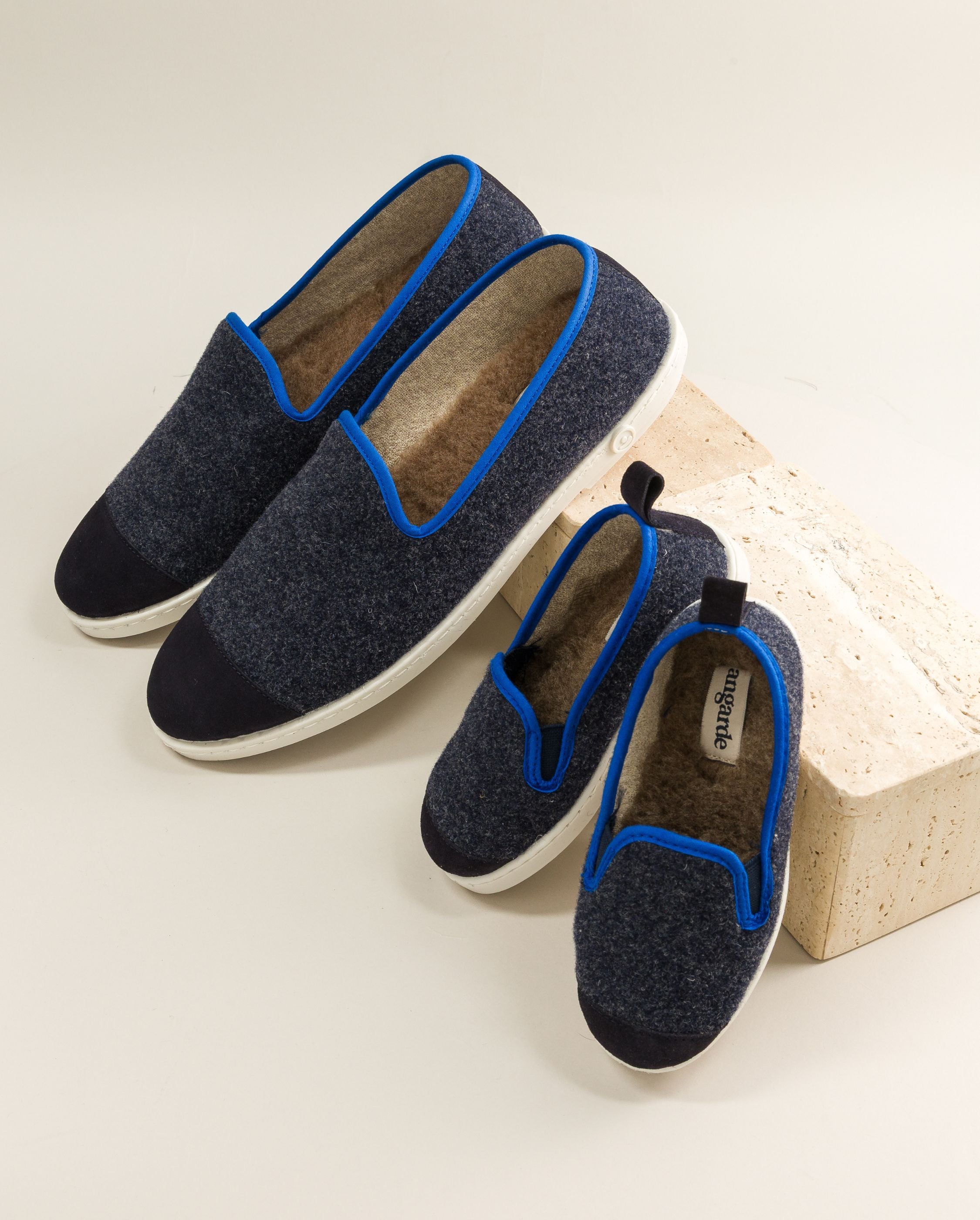 Duo de chaussons pour enfants en laine recyclée beige marine