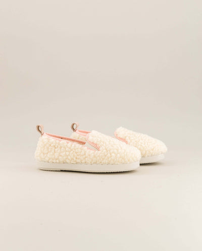 Duo de chaussons pour femme et enfant en bouclette de laine au biais rose
