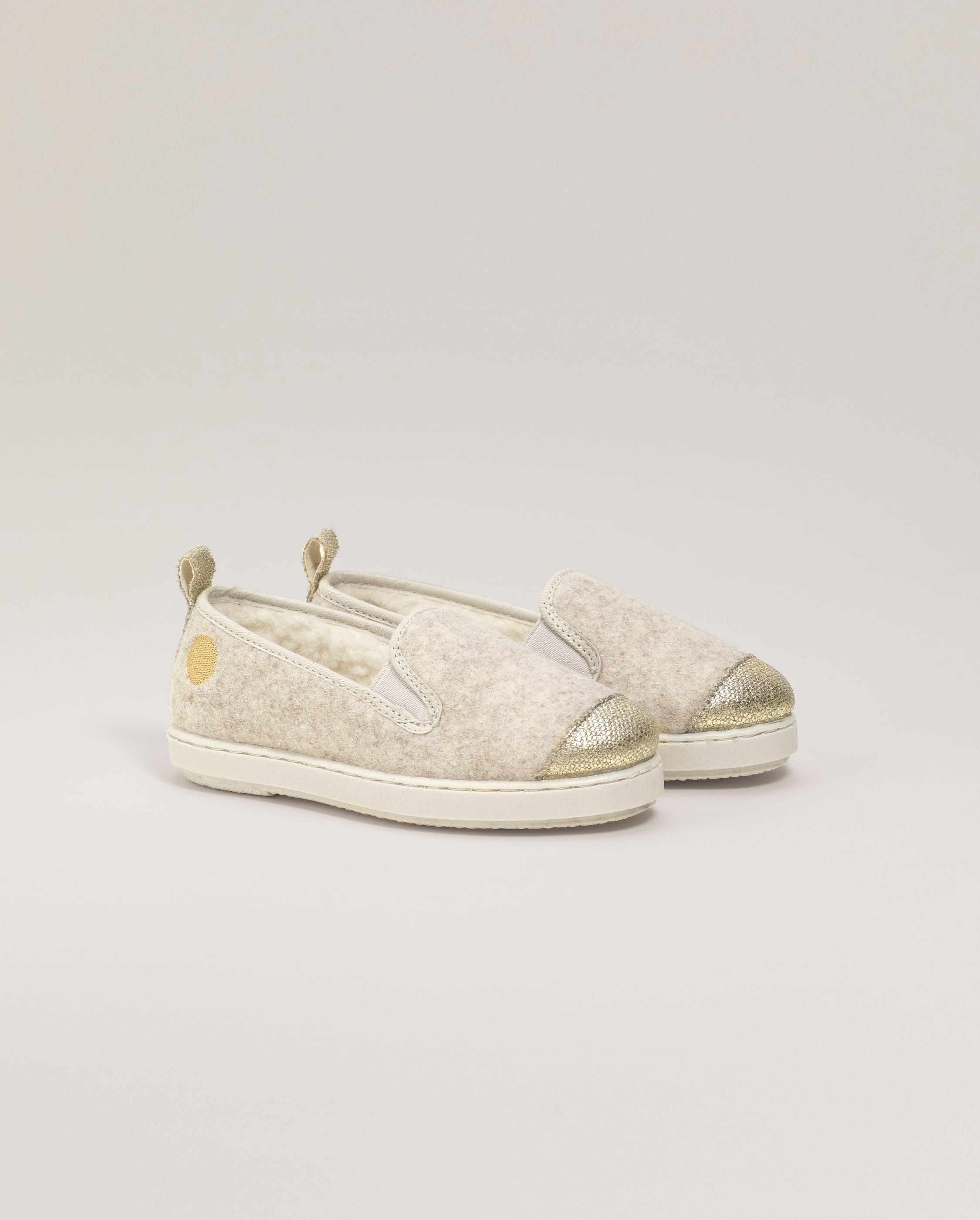 Duo de chaussons pour femme et enfant en collab avec l'Arrangeuse, beige doré