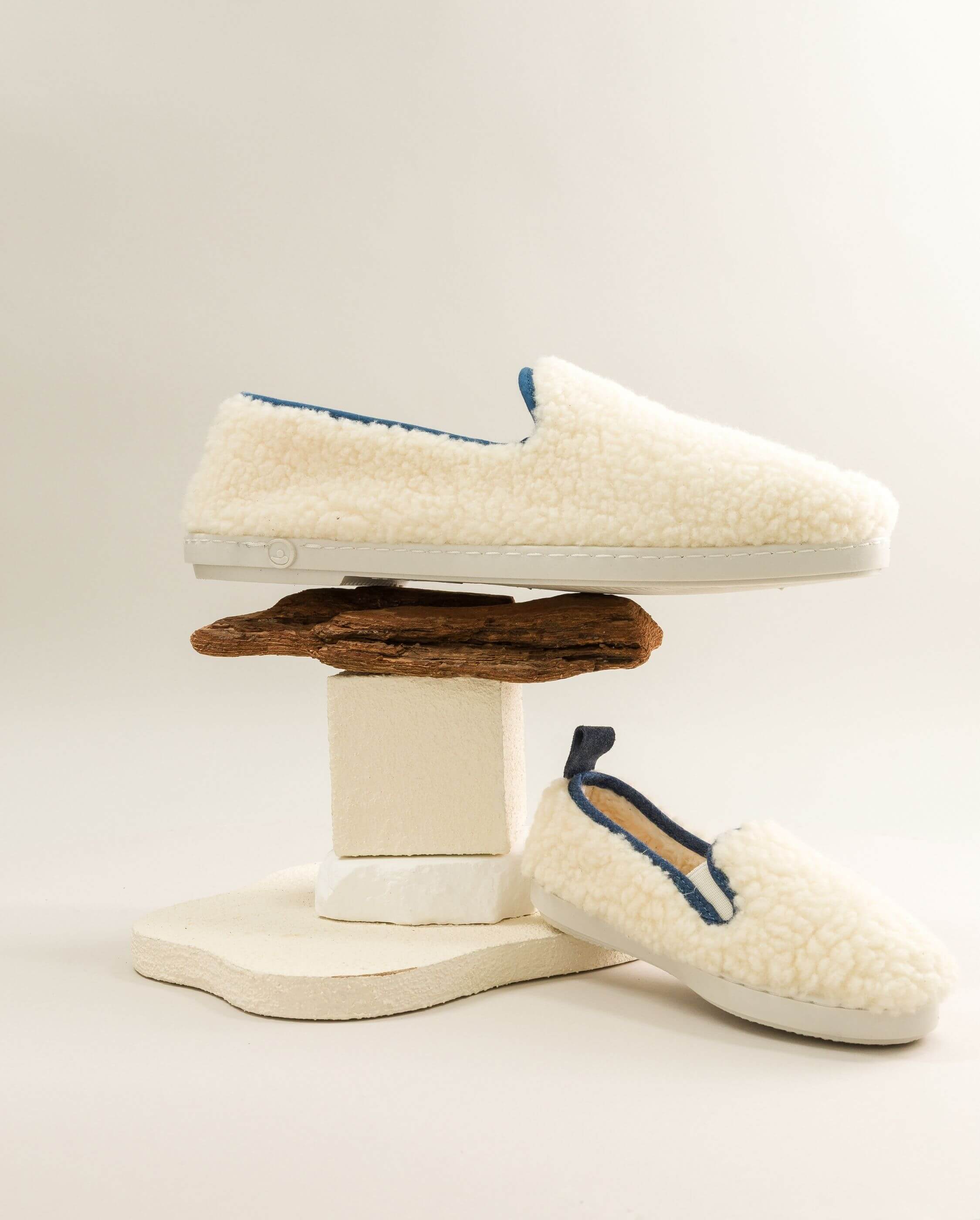Duo de chaussons pour homme en laine recyclée beige à l'empiècement marine