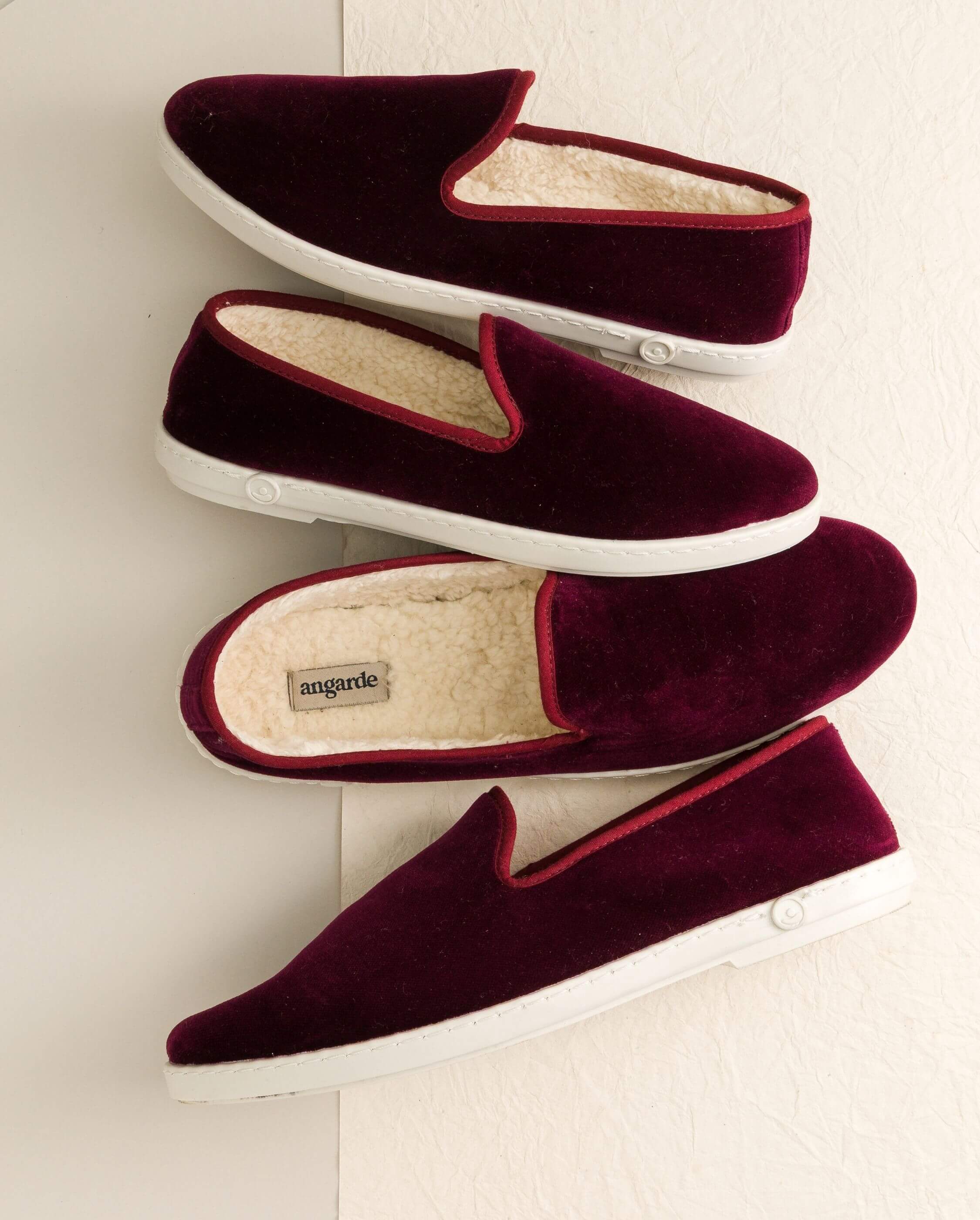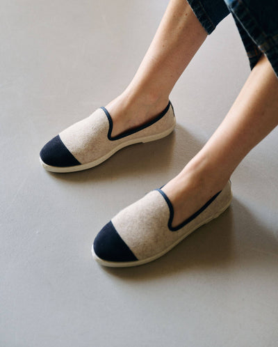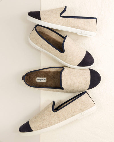 Duo de chaussons pour homme et femme en laine recyclée beige à l'empiècement marine