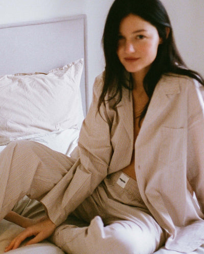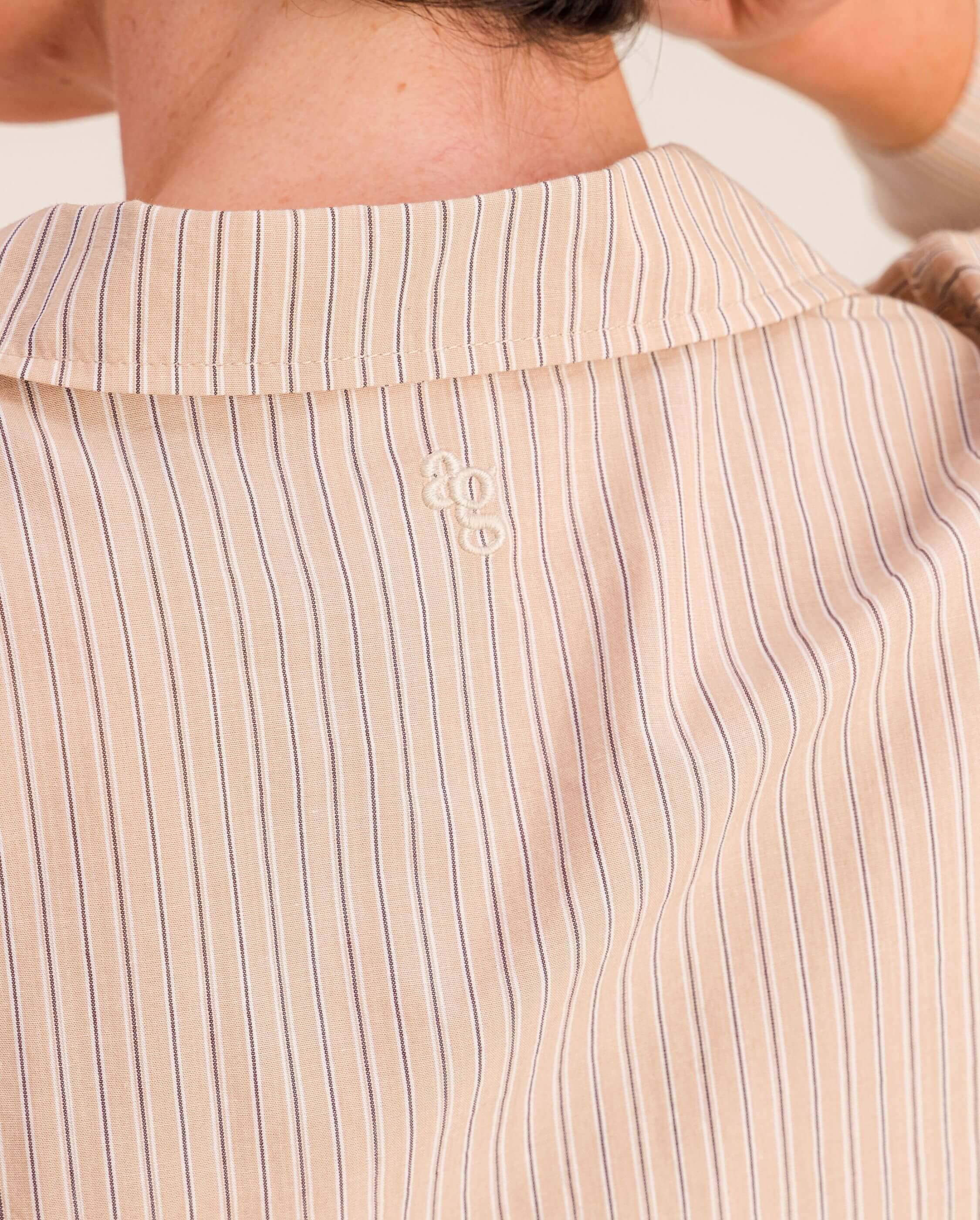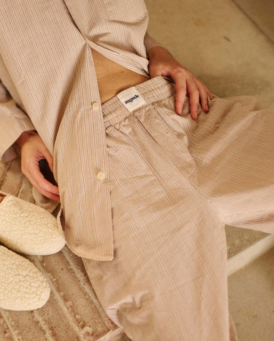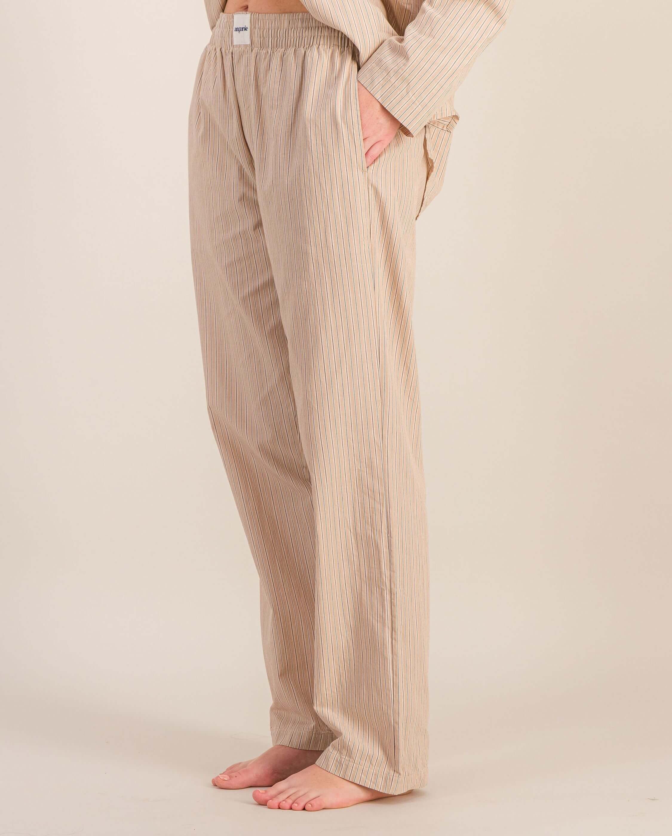 Ensemble chemise à manches longues + pantalon long en coton bio à multi-rayures beige pour femme (taille unisexe)