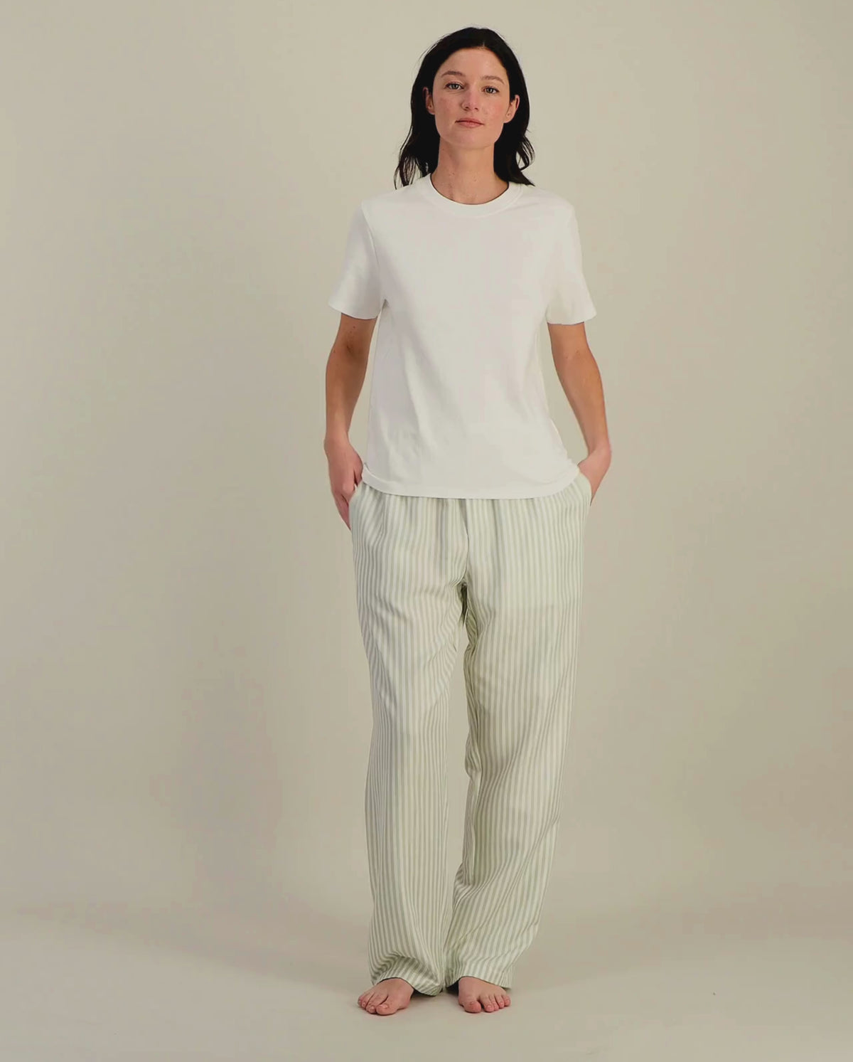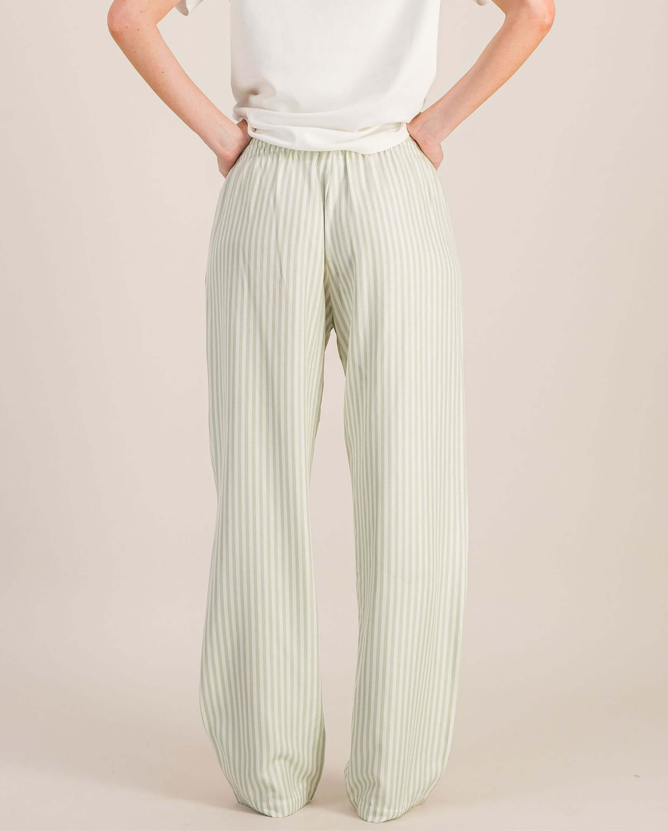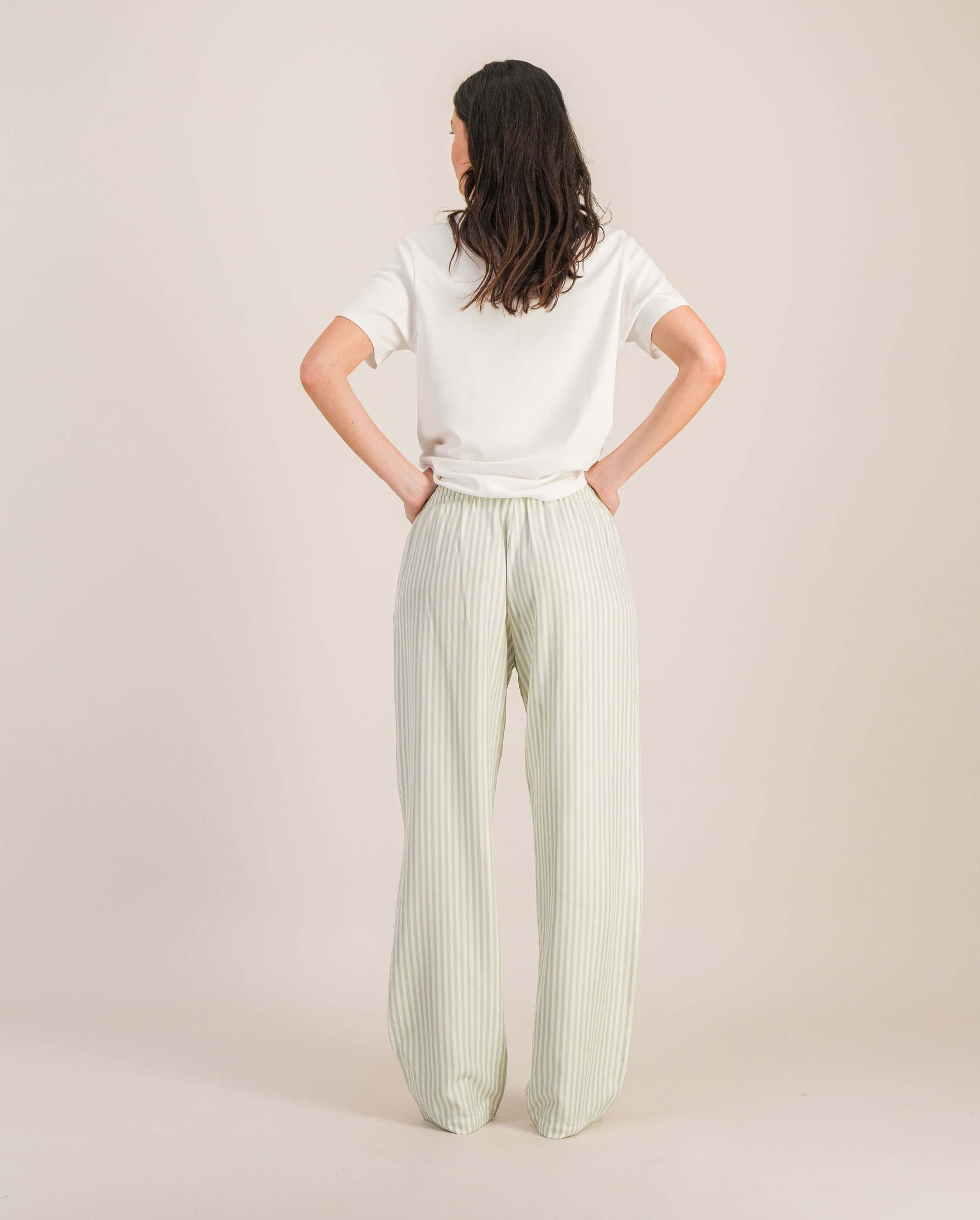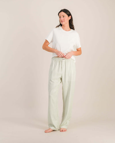 Ensemble pantalon Gibson sauge + t-shirt Bondi en coton biologique blanc pour femme (taille unisexe)