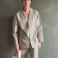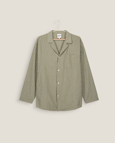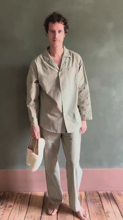 Ensemble chemise à manches longues + pantalon long en coton bio à multi-rayures kaki pour homme (taille unisexe)