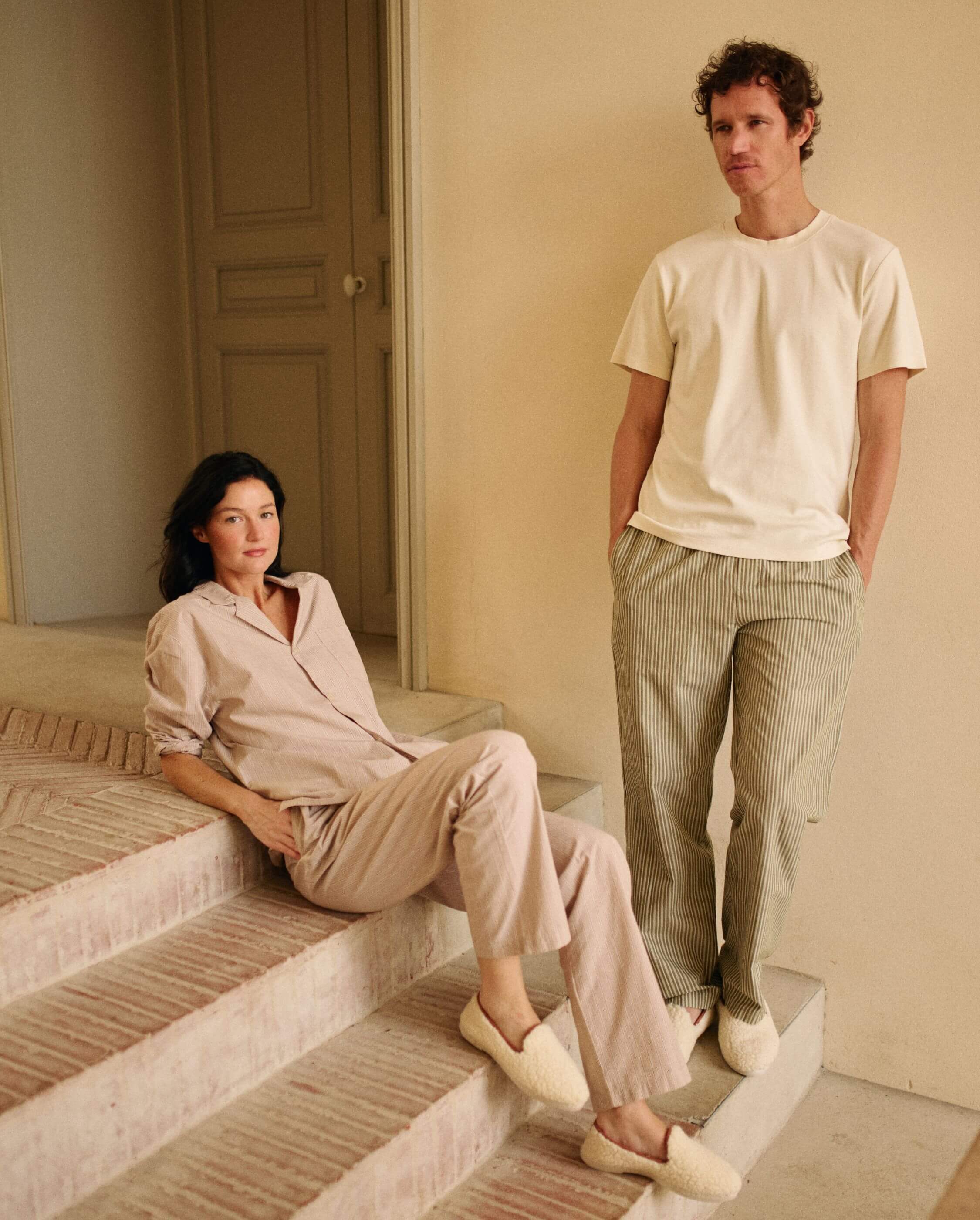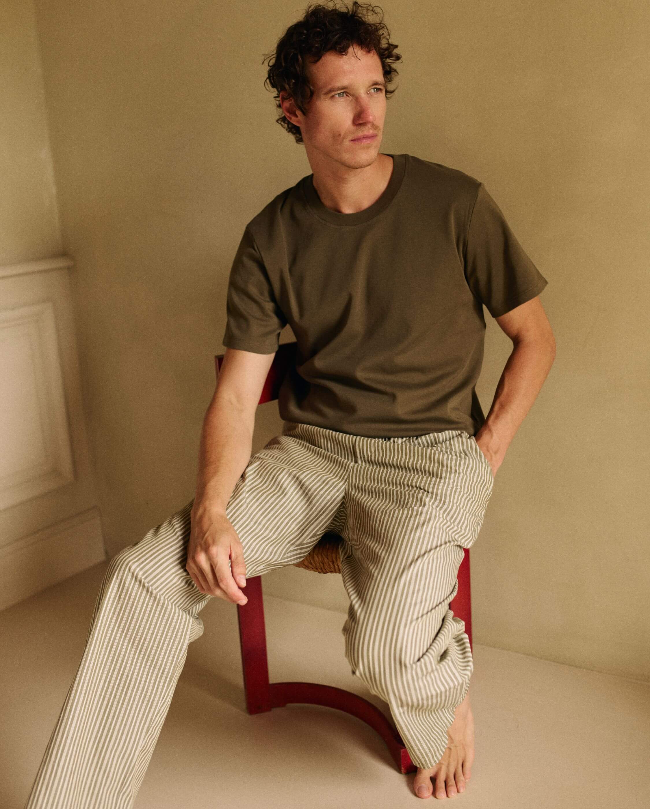 Sobriété et caractère se rencontrent dans l’ensemble Flaine homme en coton bio. Sa teinte kaki, ponctuée de fines rayures contrastées, apporte une touche graphique et contemporaine. La matière, douce et respirante, offre un confort incomparable, idéal pour les moments de repos comme pour les journées décontractées. Un ensemble loungewear éco-responsable qui conjugue élégance, légèreté et respect de la planète