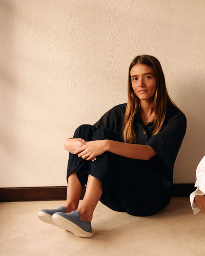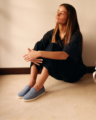 Le bleu s’impose comme une évidence dans la collection d’espadrilles femme Angarde. Couleur intemporelle, à la fois apaisante et lumineuse, elle accompagne avec naturel toutes les envies d’été. Déclinée sur des matières nobles et durables, elle révèle tout son caractère selon la texture choisie.
