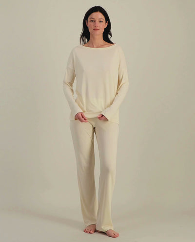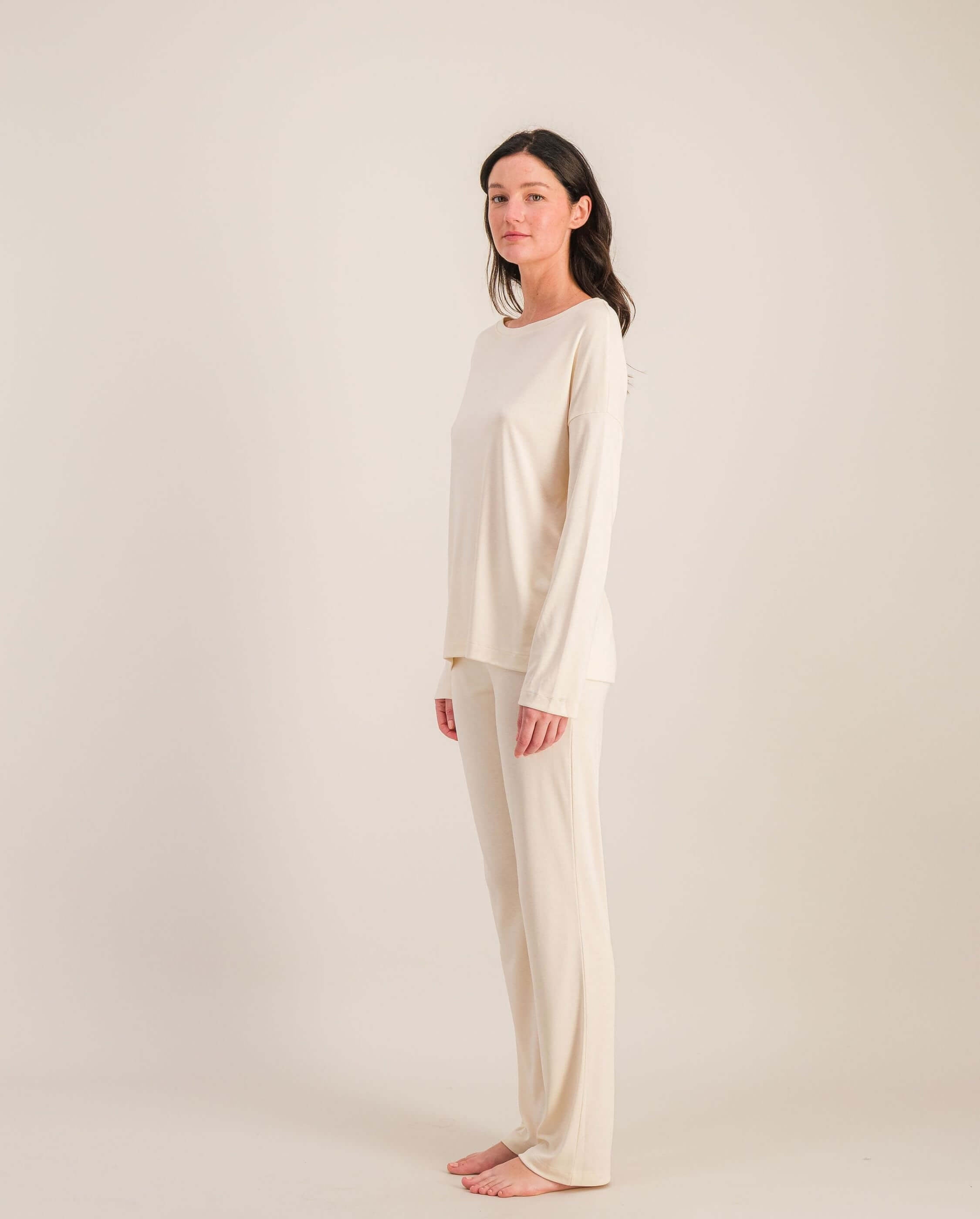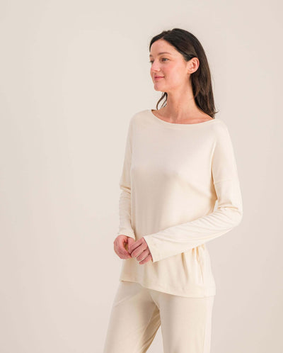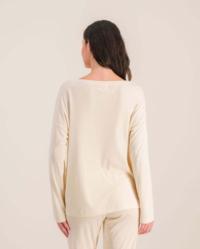 - Haut à manches longues en Tencel beige pour femme