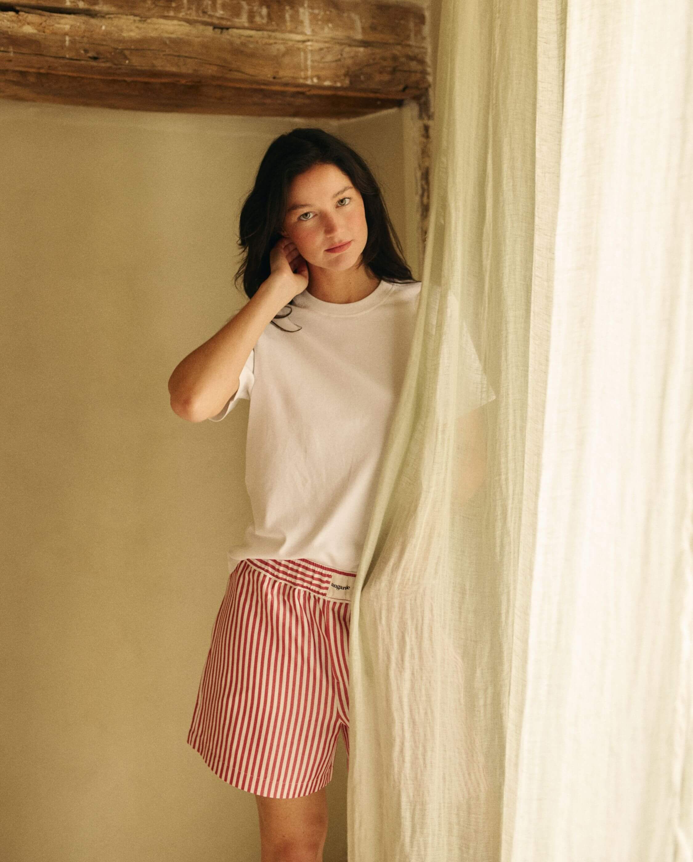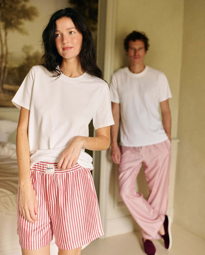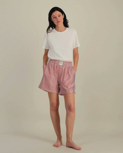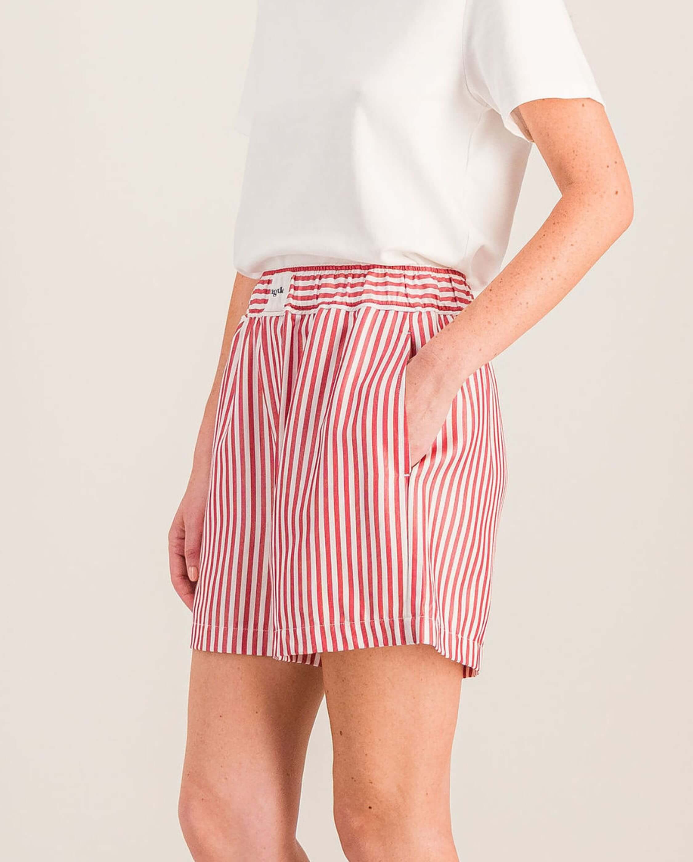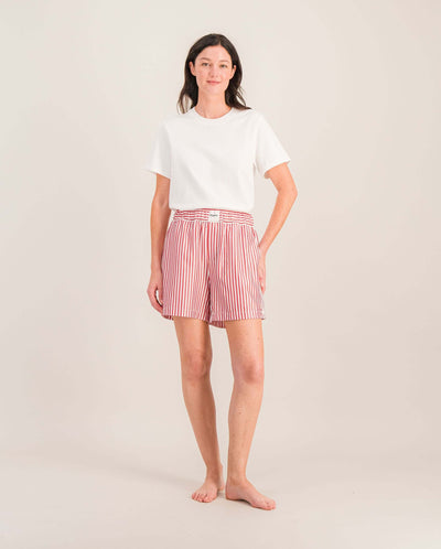 Short femme Manly, tencel rayures rouge / XXS
